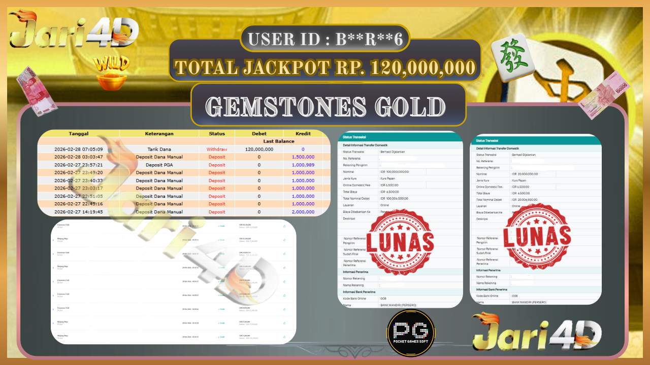 Bukti JP GEMSTONES GOLD Hari ini Di Situs JARI4D Sebesar Rp.120,000,000,- Tuntas !!