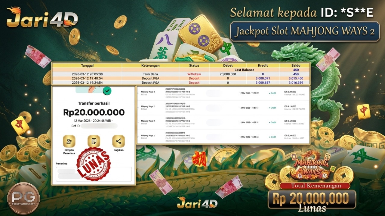 Bukti JP MAHJONG WAYS 2 Hari ini Di Situs JARI4D Sebesar Rp.20,000,000,- Tuntas !!