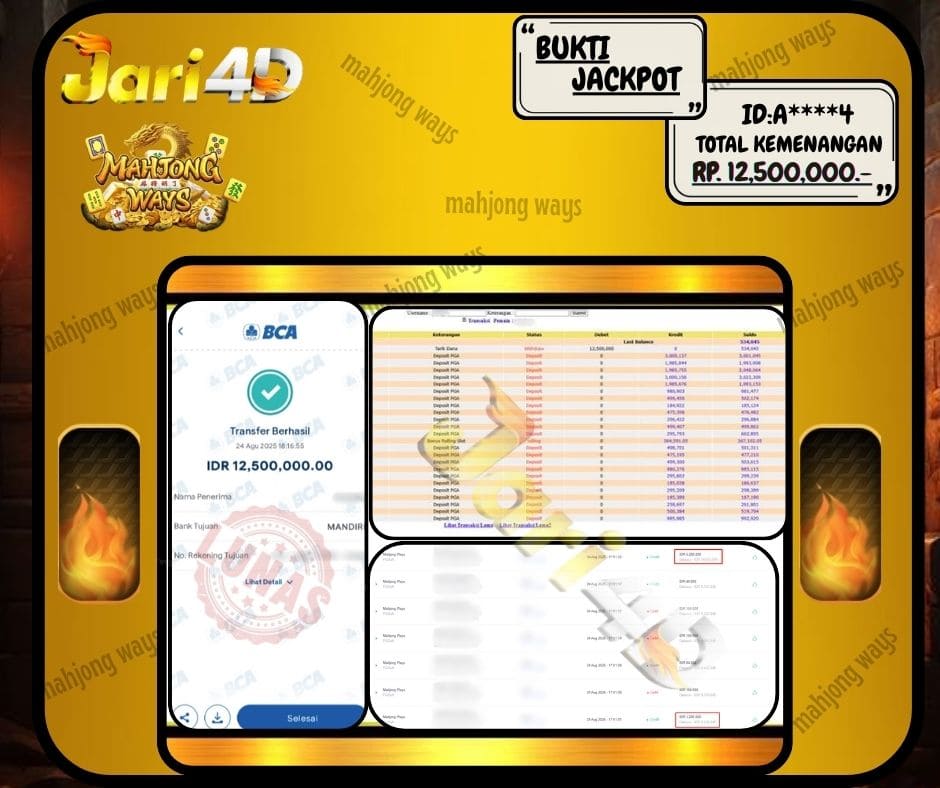 Bukti JP MAHJONG WAYS Hari ini Di Situs JARI4D Sebesar Rp.12.500.000,- Tuntas !!