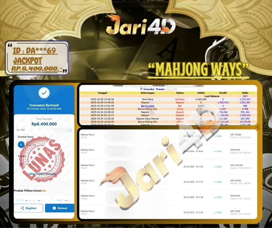 Bukti JP MAHJONG WAYS Hari ini Di Situs JARI4D Sebesar Rp.6,400,000,- Tuntas !!