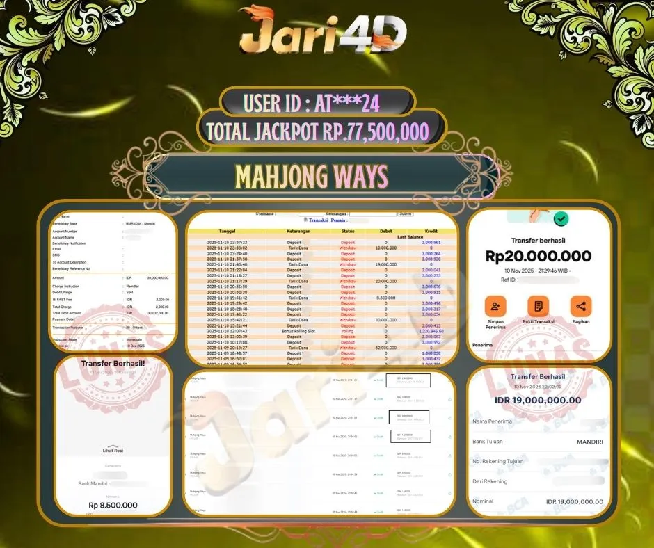 Bukti JP MAHJONG WAYS Hari ini Di Situs JARI4D Sebesar Rp.77,500,000,- Tuntas !!