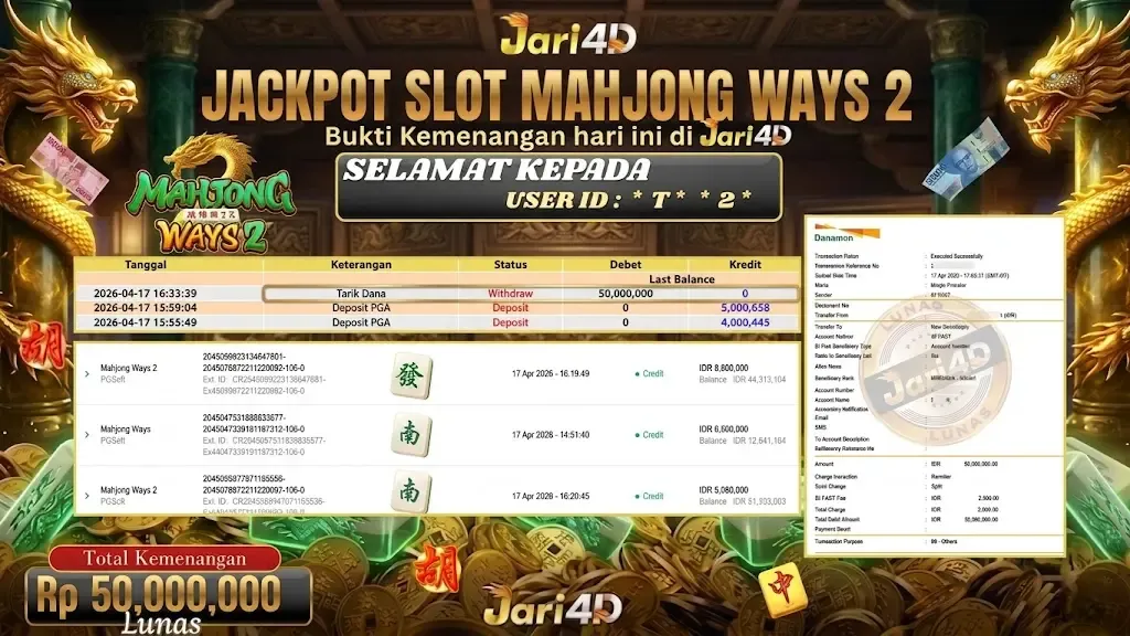 Bukti JP SLOT MAHJONG WAYS 2 Hari ini Di Situs JARI4D Sebesar Rp. 50,000,000,- Tuntas !!