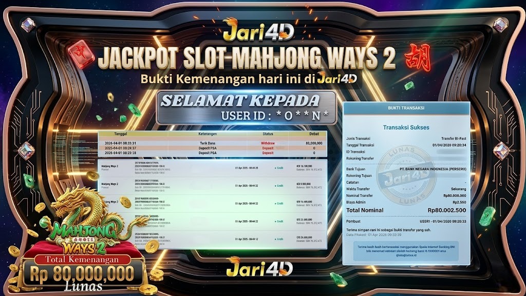 Bukti JP SLOT MAHJONG WAYS 2 Hari ini Di Situs JARI4D Sebesar Rp. 80,000,000,- Tuntas !!