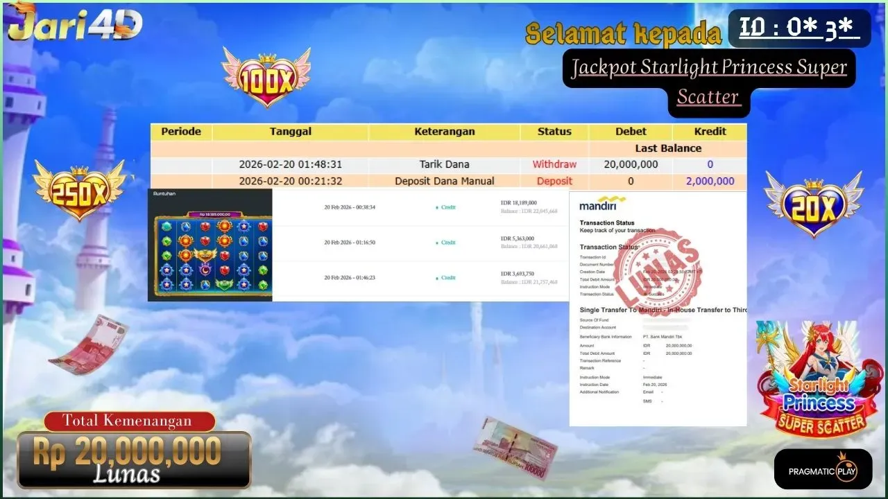 Bukti JP STARLIGHT PRINCESS SUPER SCATTER Hari ini Di Situs JARI4D Sebesar Rp.20,000,000,- Tuntas !!