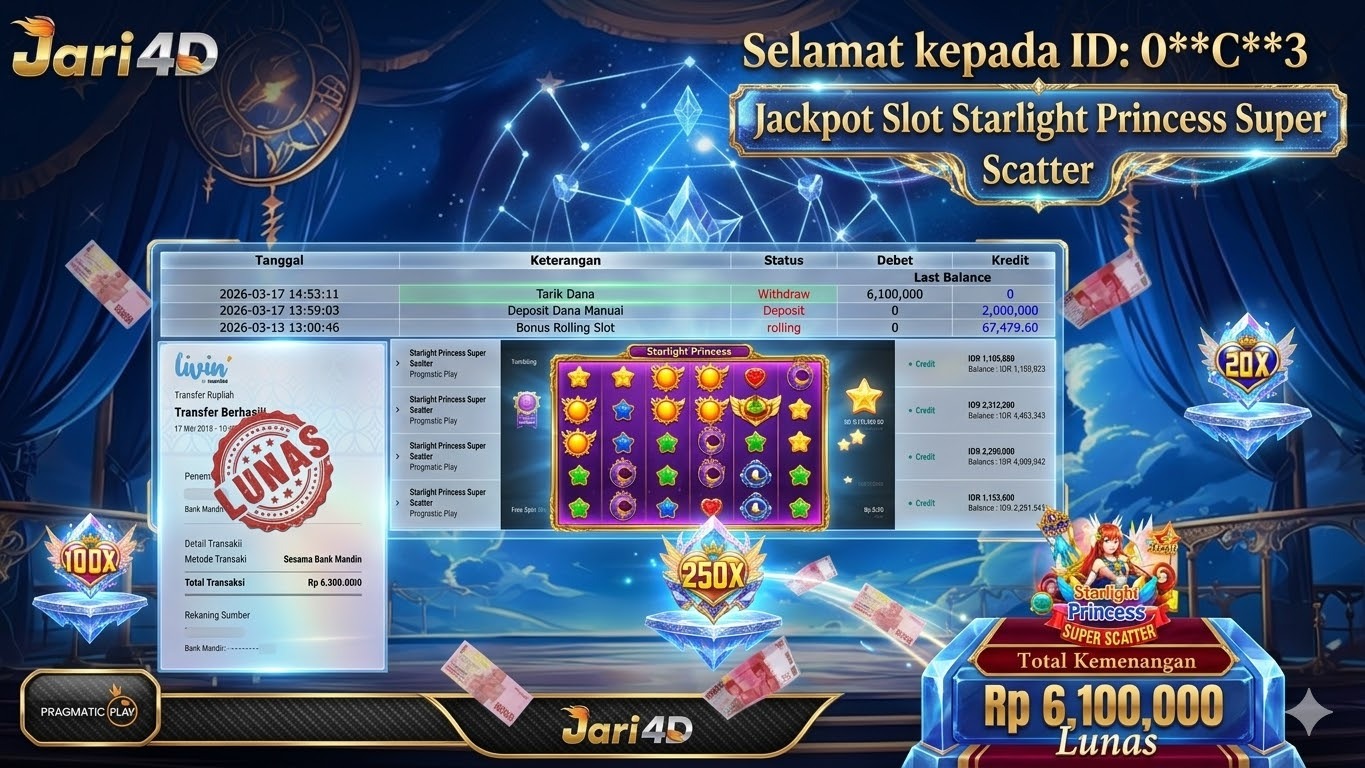 Bukti JP STARLIGHT PRINCESS SUPER SCATTER Hari ini Di Situs JARI4D Sebesar Rp. 6,100,000,- Tuntas !!