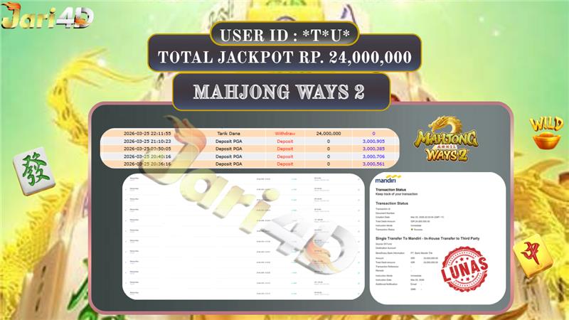 Bukti JP TOGEL MAHJONG WAYS 2 Hari ini Di Situs JARI4D Sebesar Rp. 24,000,000,- Tuntas !!