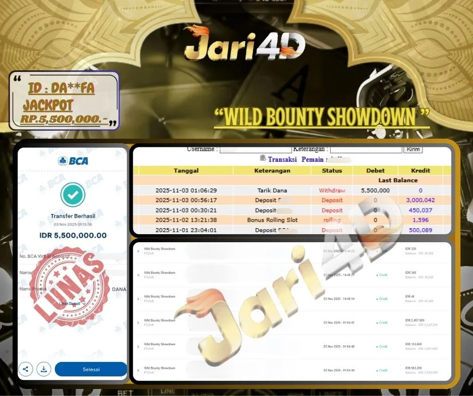 Bukti JP WILD BOUNTY SHOWDOWN Hari ini Di Situs JARI4D Sebesar Rp.5,500,000,- Tuntas !!