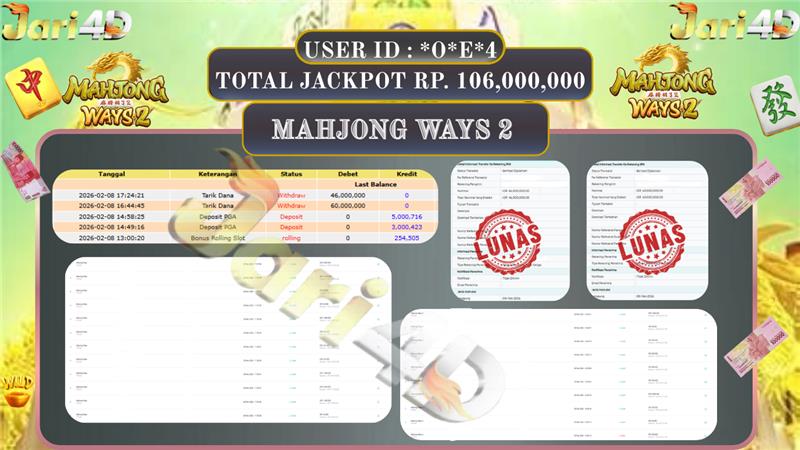 BUKTI WITHDRAW JARI4D KEMENANGAN JACKPOT MAHJONG WAYS 2 Rp.106.000.000,- LUNAS
