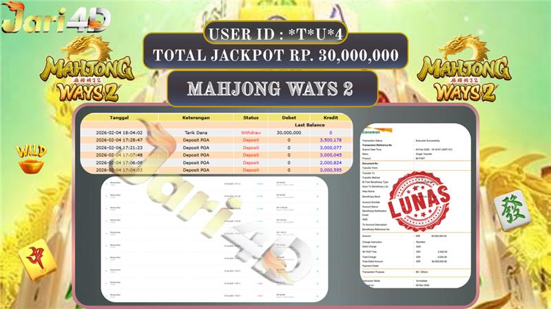 BUKTI WITHDRAW JARI4D KEMENANGAN JACKPOT MAHJONG WAYS 2 Rp.30.000.000,- LUNAS