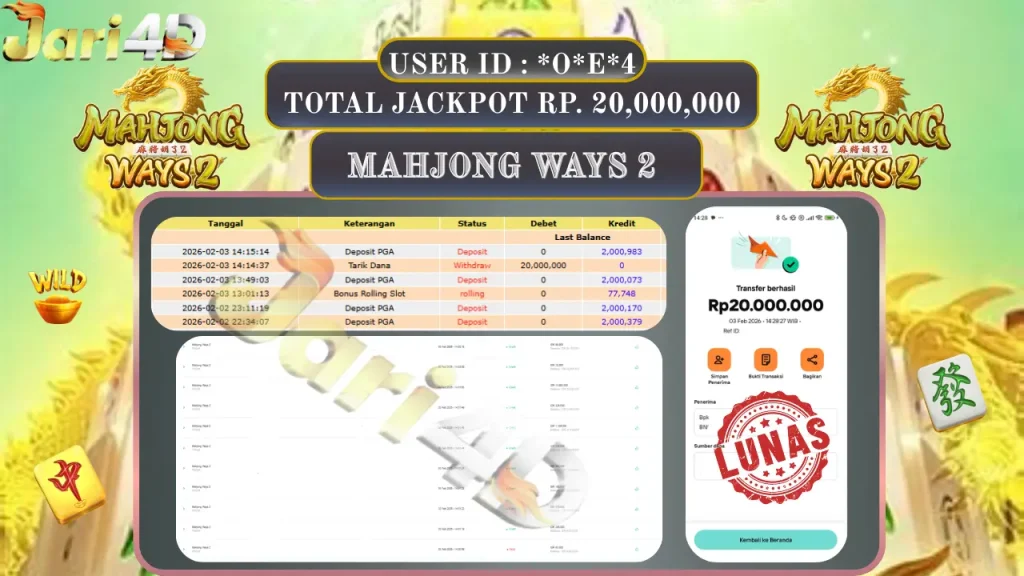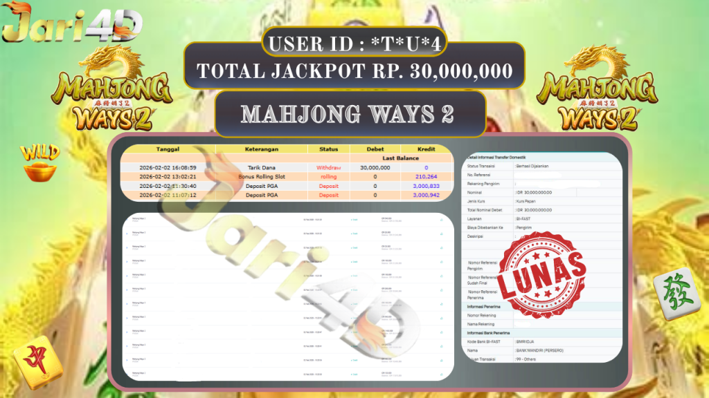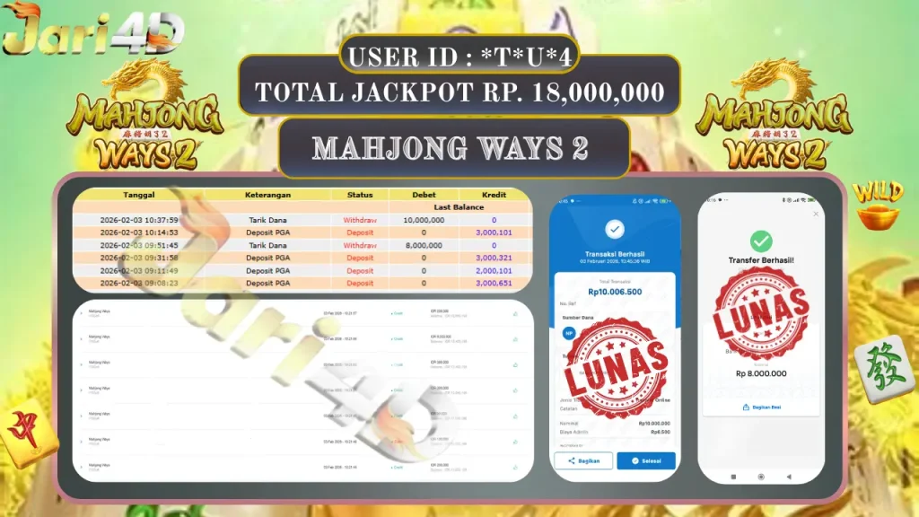 BUKTI WITHDRAW JARI4D KEMENANGAN JACKPOT MAHJONG WAYS 2 Rp.18.000.000,- LUNAS