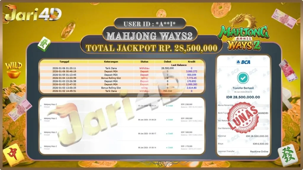 BUKTI WITHDRAW JARI4D KEMENANGAN JACKPOT MAHJONG WAYS 2 Rp.99.00.000,- LUNAS