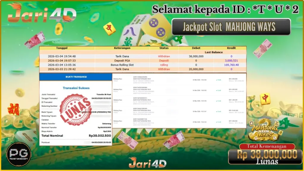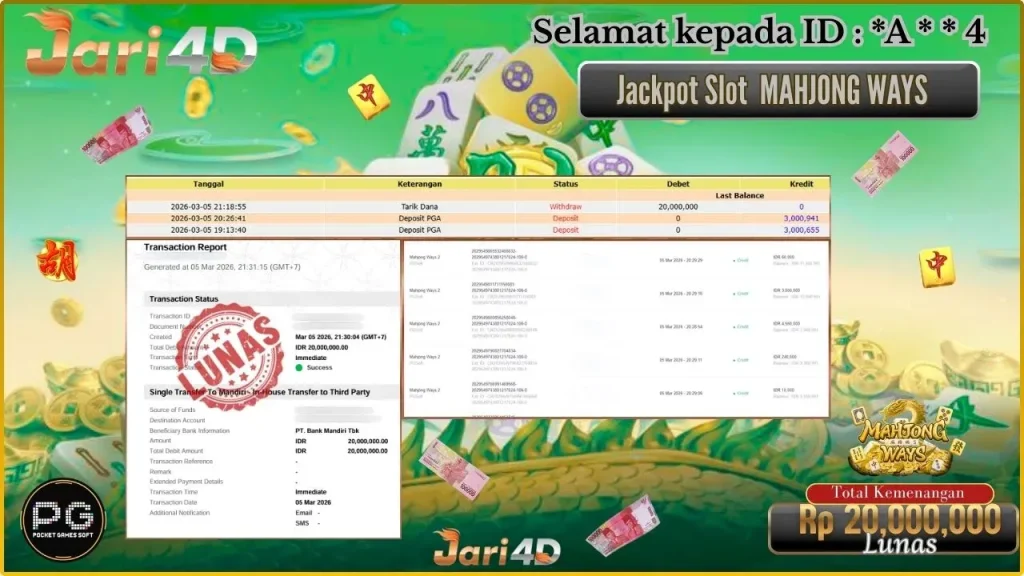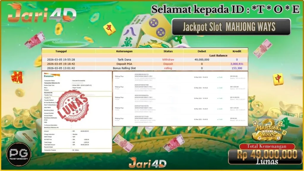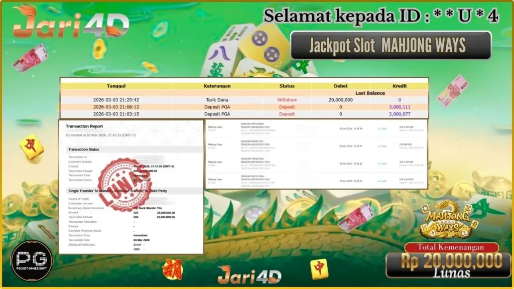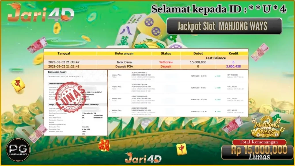 Bukti Withdraw Kemenangan Jackpot Di Situs Jari4D Jari4d Merupakan Situs Judi Online Togel , Slot , Livecasino Resmi Paling Terpercaya Sepanjang Tahun Sampai Saat Ini 2026. Jari4D Juga Merupakan Situs Online Dengan Licensi Kemenangan Jackpot Berapapun Pasti Di Bayar Tuntas !!! Tanpa Sedikit-Pun Basaa Basi Dari Pihak Web Dan Management Withdraw Jari4D. Kemenangan Berapapun […]