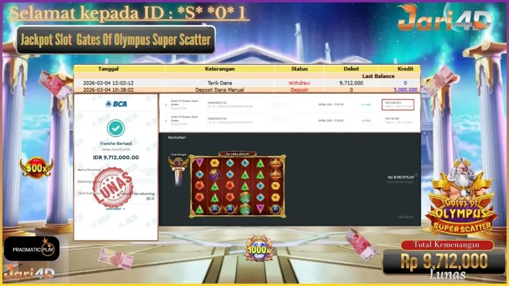 Bukti JP GATES OF OLYMPUS SUPER SCATTER Hari ini Di Situs JARI4D Sebesar Rp.20,000,000,- Tuntas !!