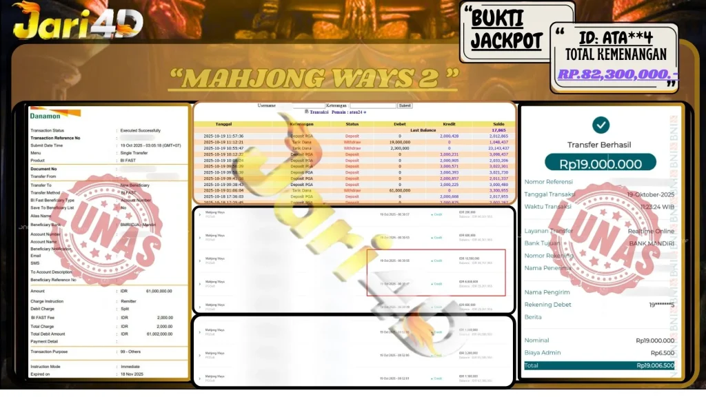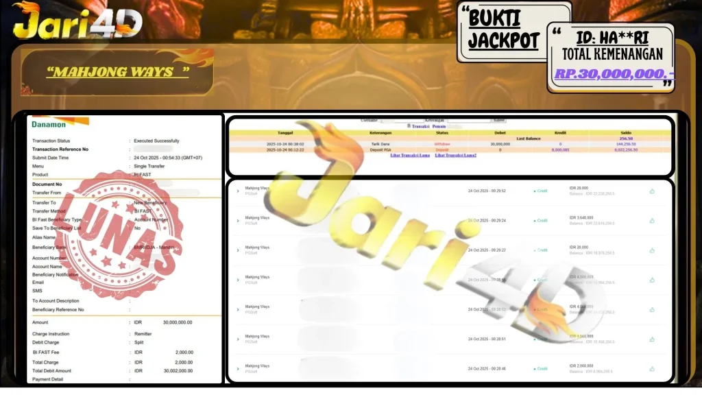 Bukti JP MAHJONG WAYS Hari ini Di Situs JARI4D Sebesar Rp.40,000,000,- Tuntas !! Read More »