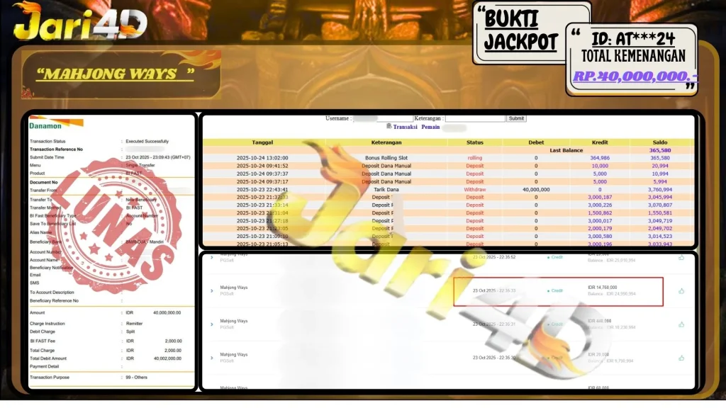 Bukti JP MAHJONG WAYS Hari ini Di Situs JARI4D Sebesar Rp.40,000,000,- Tuntas !!