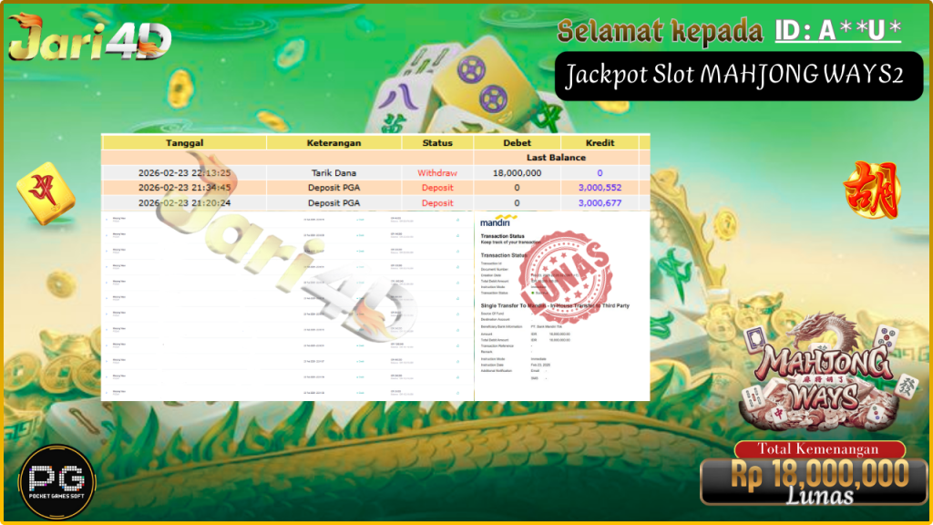 Bukti MAHJONG WAYS Hari ini Di Situs JARI4D Sebesar Rp.20,000,000,- Tuntas !!