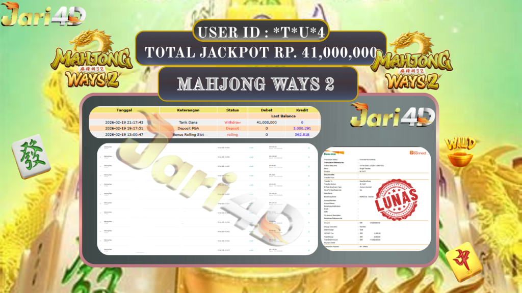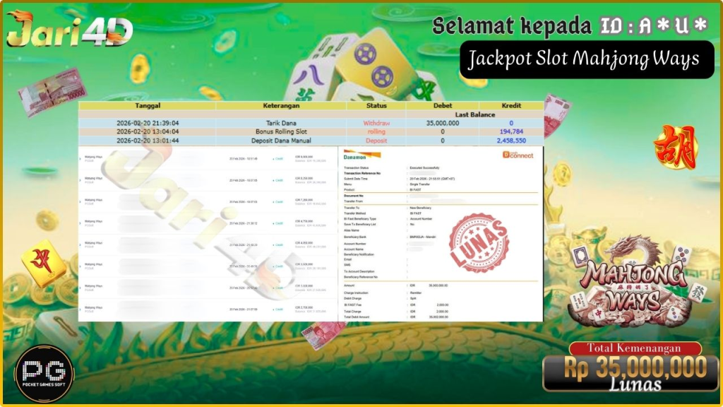 Bukti JP MAHJONG WAYS Hari ini Di Situs JARI4D Sebesar Rp.34,000,000,- Tuntas !! Read More »