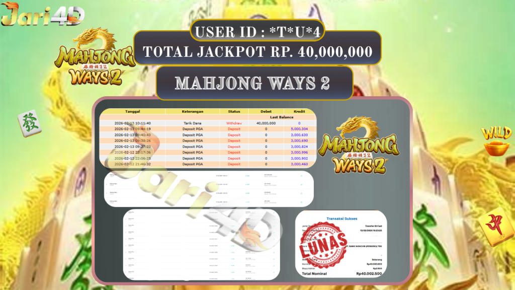 BUKTI WITHDRAW JARI4D KEMENANGAN JACKPOT MAHJONG WAYS 2 Rp.15.000.000,- LUNAS